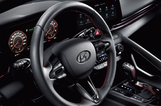 Las puntadas rojas, difíciles de olvidar, muestran el ADN N que recorre este Elantra. Desde los asientos de cubo deportivos hasta los volantes exclusivos N; estos elementos están destinados a saciar la sed de todos los que buscan la deportividad.