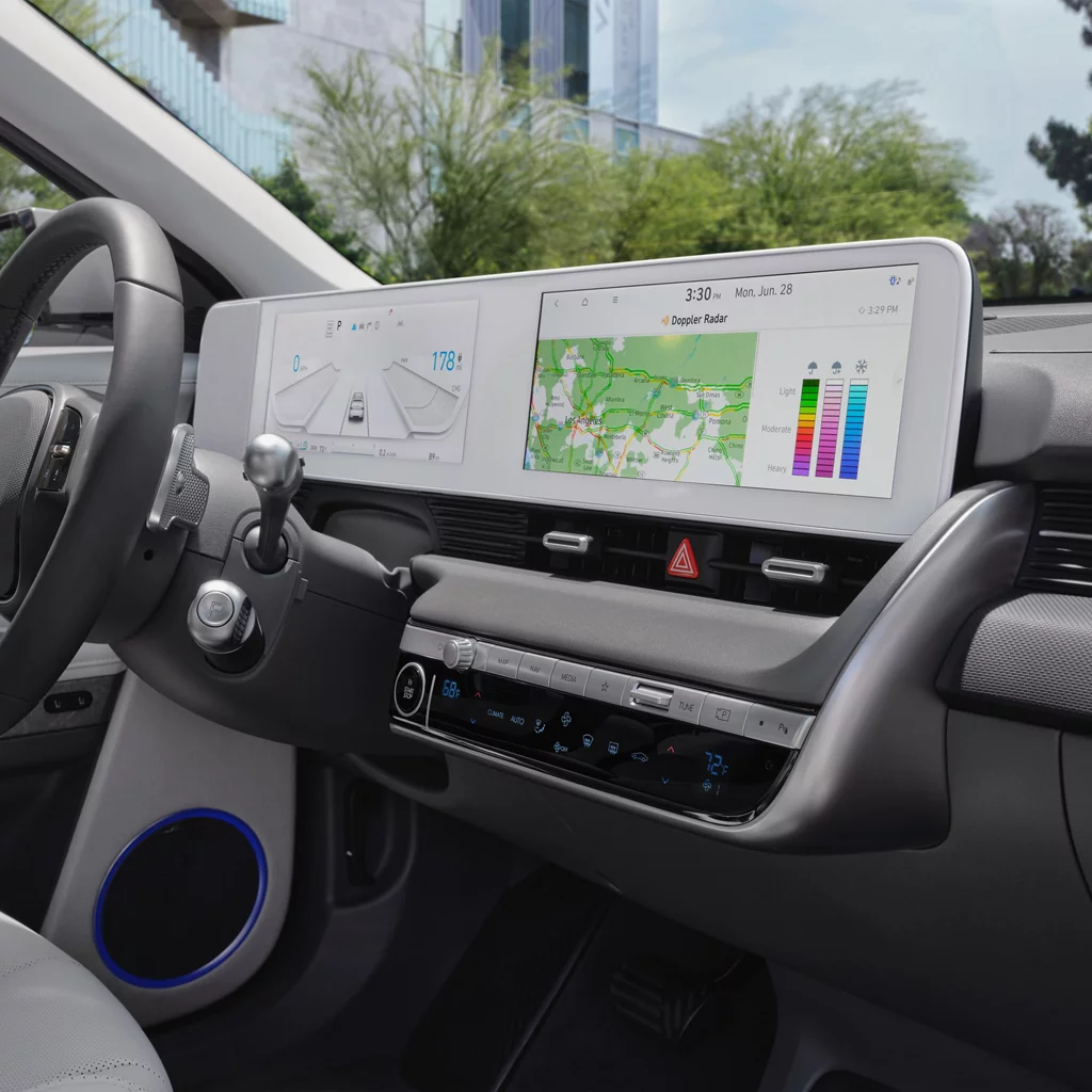 Estándar en la versión Limited. El monitor de punto ciego muestra un video de sus puntos ciegos en la moderna y amplia pantalla de 12.3 pulgadas del IONIQ 5, para que la información más importante esté siempre a la vista.