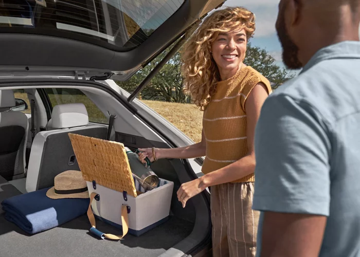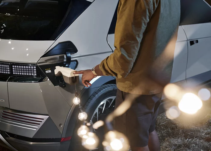 Nuestro estilo de vida es más eléctrico que nunca. Por este motivo, la IONIQ 5 dispone de tomacorrientes de 120 V Vehicle-to-Load (V2L) para suministrar energía dentro y fuera del vehículo a equipos y aparatos eléctricos más grandes. Ahora puede conectar un televisor o una cafetera para su viaje de campamento, o una computadora portátil para su viaje de trabajo. Incluso puede cargar otro vehículo eléctrico en caso de emergencia. Las posibilidades son infinitas.