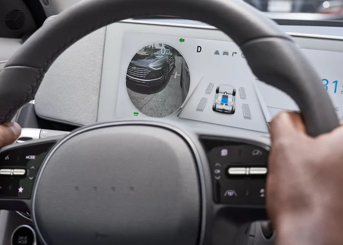 Estándar en la versión Limited. Cuanto más sabe sobre qué hay a su alrededor, mejor preparado está para el camino. El monitor de vista periférica disponible le muestra vistas de cámara de los laterales y las partes posterior y delantera de su IONIQ 5 directamente en el tablero.