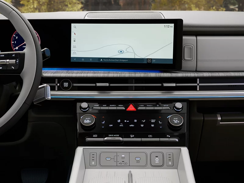 ¿Por qué simplemente ir a lo grande cuando puedes hacerlo de manera épica con un grupo de instrumentos totalmente digital de 12.3 pulgadas disponible y una pantalla táctil de alta resolución de 12.3 pulgadas con navegación disponible? Las pantallas extragrandes de la SANTA FE significan que los mapas, el entretenimiento y las comunicaciones no solamente son fáciles de ver, sino que también se ven increíbles.